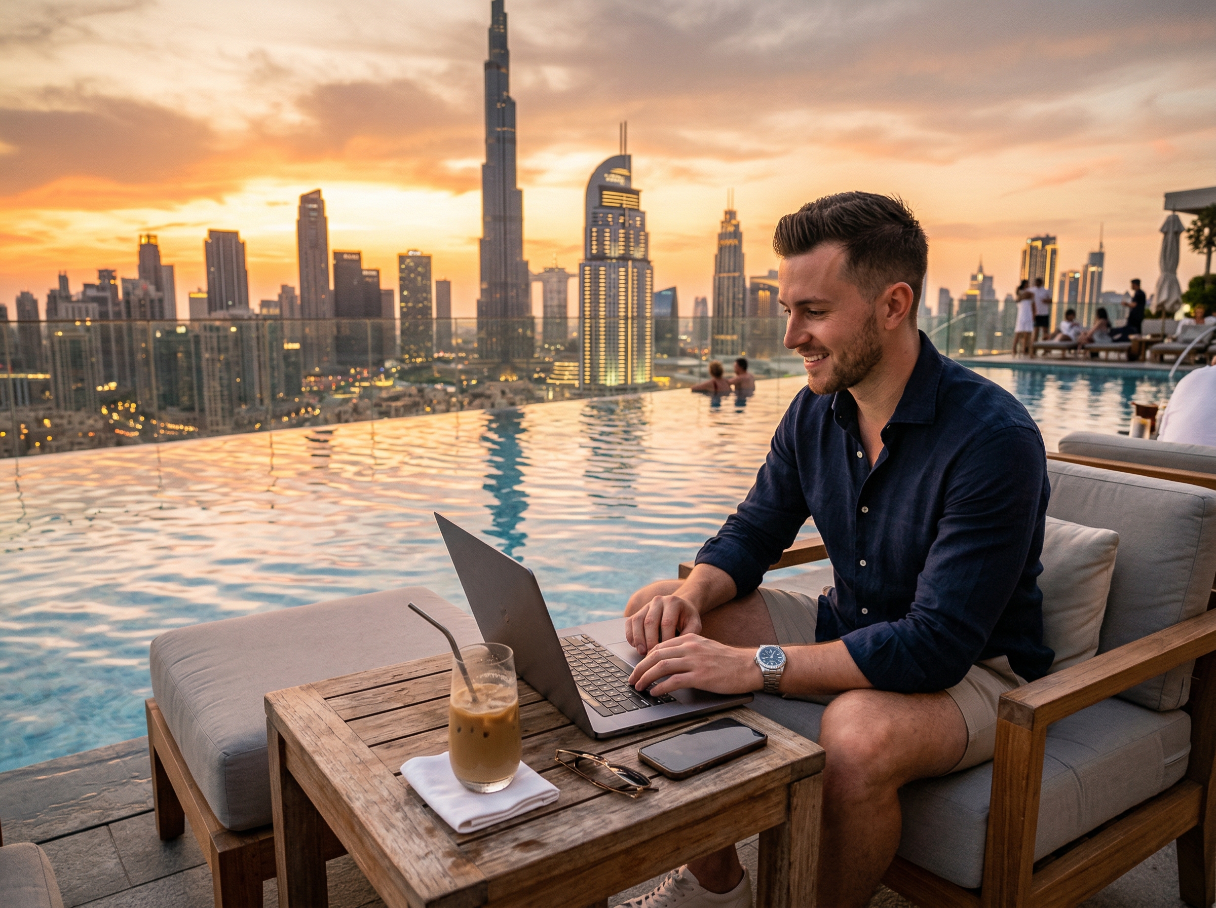 Unser Gründer lebt, was er predigt: Büro in Dubai, arbeiten von überall, Ziele statt Uhrzeiten. Wenn du deinen Job in 1h erledigen kannst statt in 8h - herzlichen Glückwunsch, du hast den Rest des Tages frei.